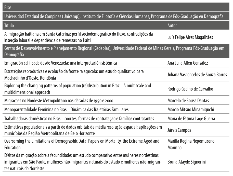 |  Universidad Estadual de   Campinas (UNICAMP), Instituto de Filosofía e Ciências Humanas, Programa de   Pós-Graduação en Demografía     |