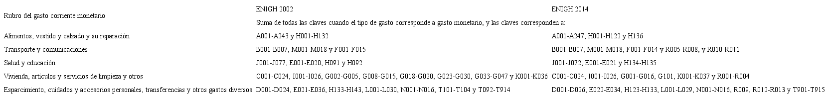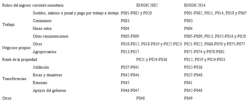 De la información disponible en las enigh de 2002 y de 2014 se utilizó: