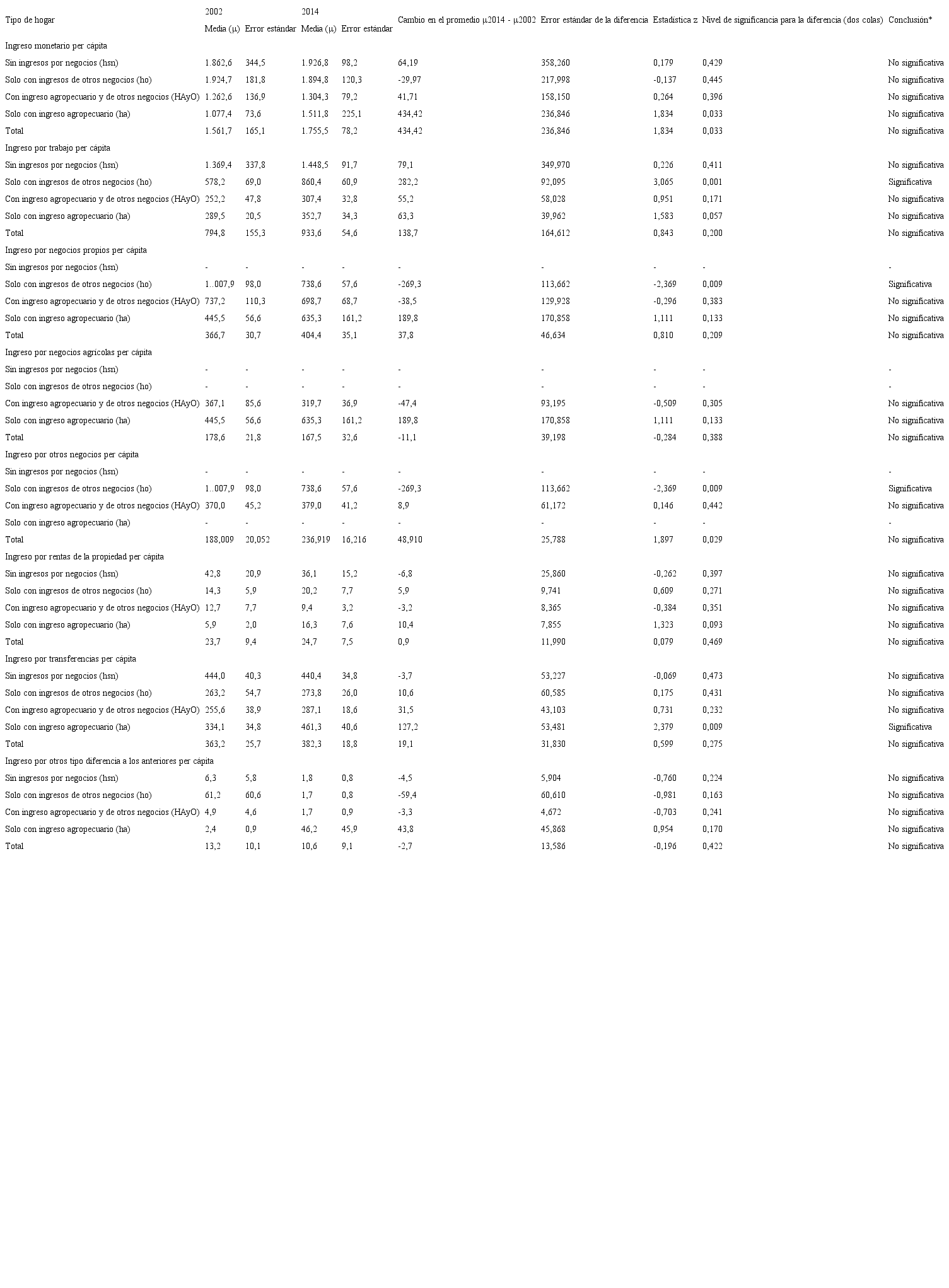 μ2002 es el ingreso promedio per cápita total o por rubro de los hogares rurales según tipo en 2002;