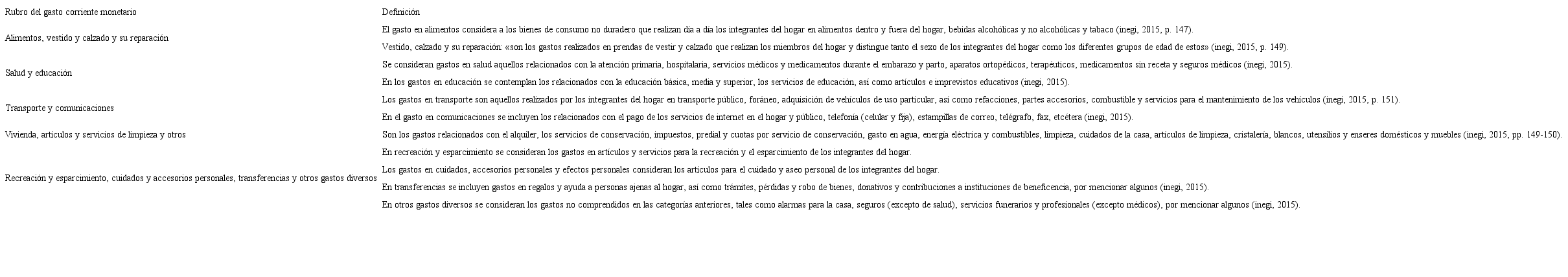 INEGI (2015). Encuesta Nacional de Ingresos y Gastos de los Hogares 2014, enigh: descripción de la base de datos. Ciudad de México: inegi.