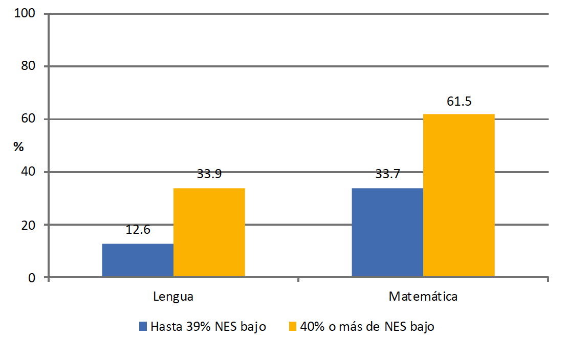 Nota: a Se trata del porcentaje de alumnos con nivel económico-social (NES) bajo en su año de estudio. Se construyó a partir del nivel educativo de los padres, tenencia de bienes de consumo y confort y tenencia de libros en el hogar.