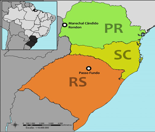 Mapa 1: Localização dos dois municípios de nossa pesquisa no sul do Brasil