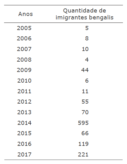 Keywords: Bengalis, Bangladesh, Immigration, Brazil, Employment.