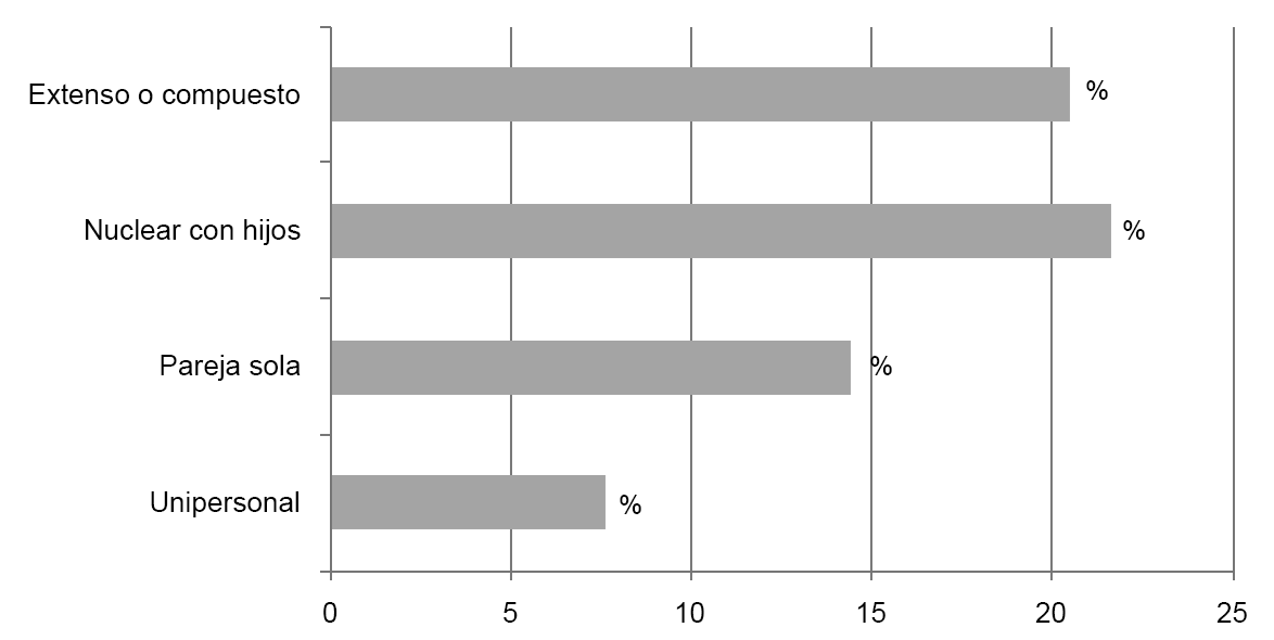 Un cambio importante en los hogares unipersonales es la tendencia creciente que han tenido desde los noventa y en la última década, pasando del 10.0 % en 1990 a 13.7 % en el 2015 (Monteiro et al., 2018). Algunos estudios sugieren que la conformación de estos hogares puede responder a una situación de autonomía e independencia, o también puede ser producto de una situación de aislamiento y pérdida (Ramos, 1994). En el caso de México, se ha encontrado que una alta proporción de personas mayores se encuentran desprotegidas en cuanto a ingresos y seguro médico se refiere (Garay y Montes de Oca, 2011).