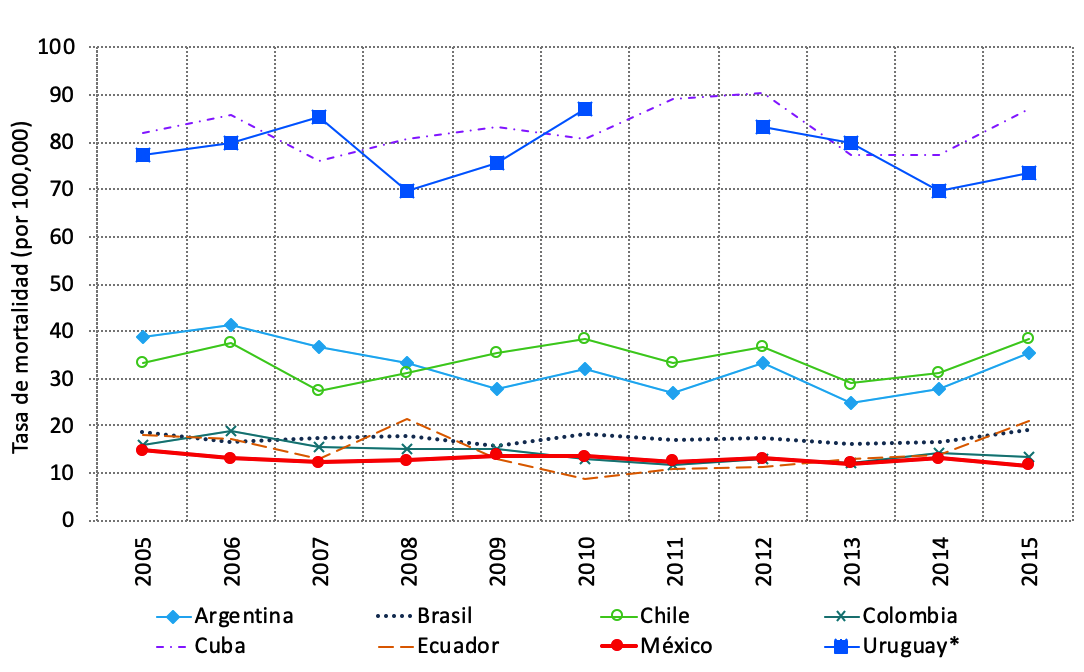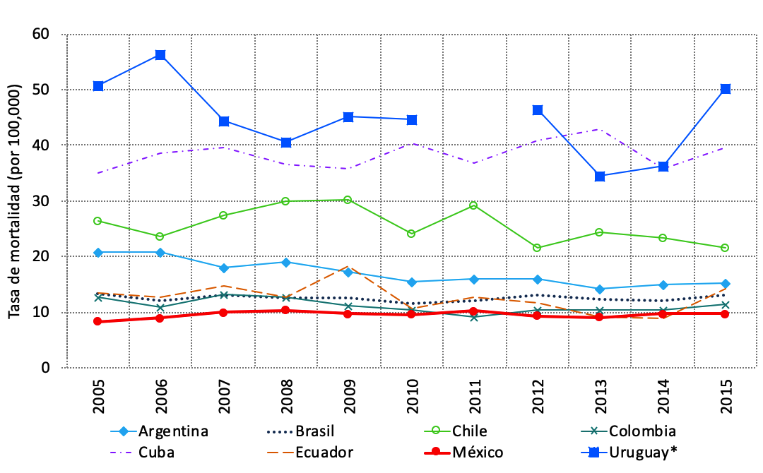 *Para 2011 no hay información disponible sobre mortalidad para Uruguay.