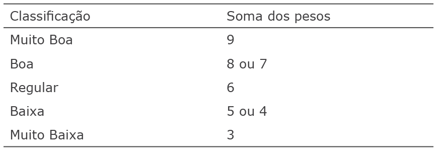 • Intervalo padrão de “Elevada” qualidade- Peso 3