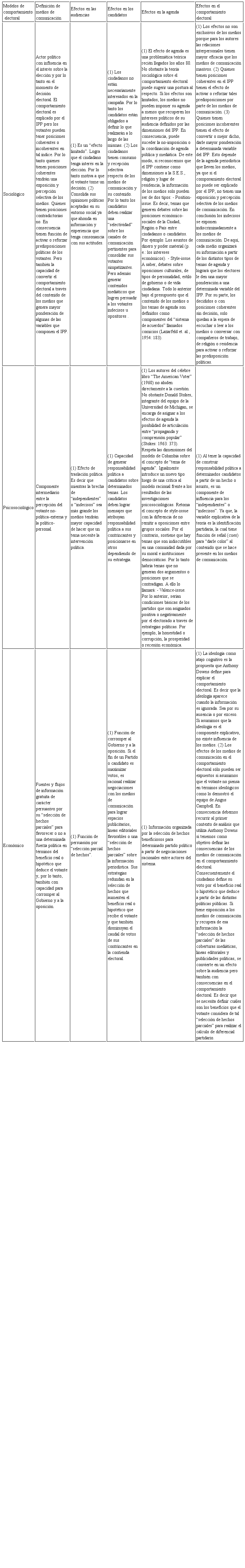 Debido a la extensión del artículo, presentaremos sintéticamente los criterios teóricos y metodológicos utilizados para recuperar el concepto de medios de comunicación en los modelos tradicionales de comportamiento electoral.