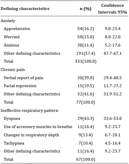 Objective: to identify nursing diagnoses, their defining characteristics and related factors, according to the NANDA-International diagnostic classification (2012-2014).