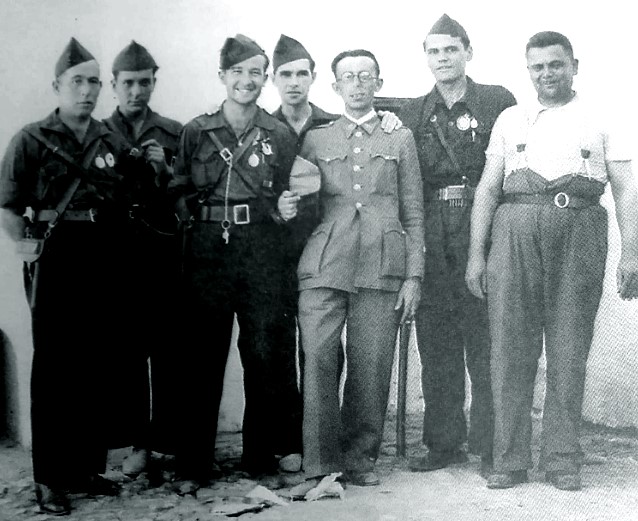 La otra fotografía corresponde a integrantes de la Escuadra Negra de Montijo (Badajoz), un grupo de falangistas a los que se atribuye el asesinato de más de ciento veinte personas en aquella localidad extremeña en 1936.