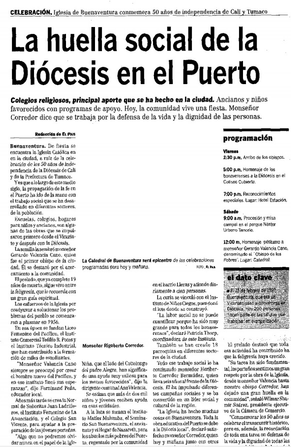 «La huella social de la Diócesis en el Puerto.» El País, Cali, 20 de junio de 2003