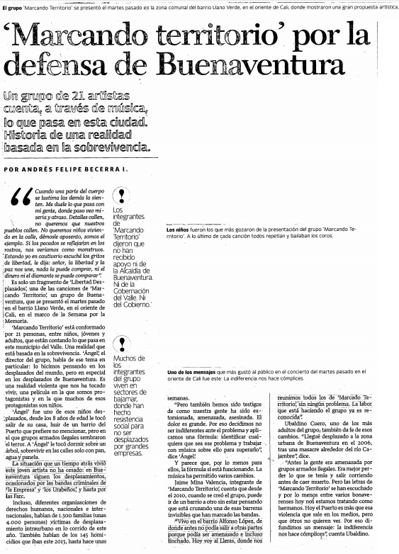 «Marcando territorio por la defensa de Buenaventura.» El País, Cali, septiembre de 2013.