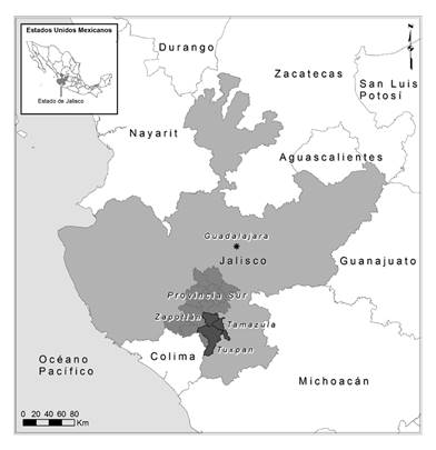 En el mapa 1 se ilustra la región de estudio que corresponde al sur del Estado de Jalisco, donde se encuentran los municipios de Zapotlán, Tuxpan y el área rural de Tamazula.