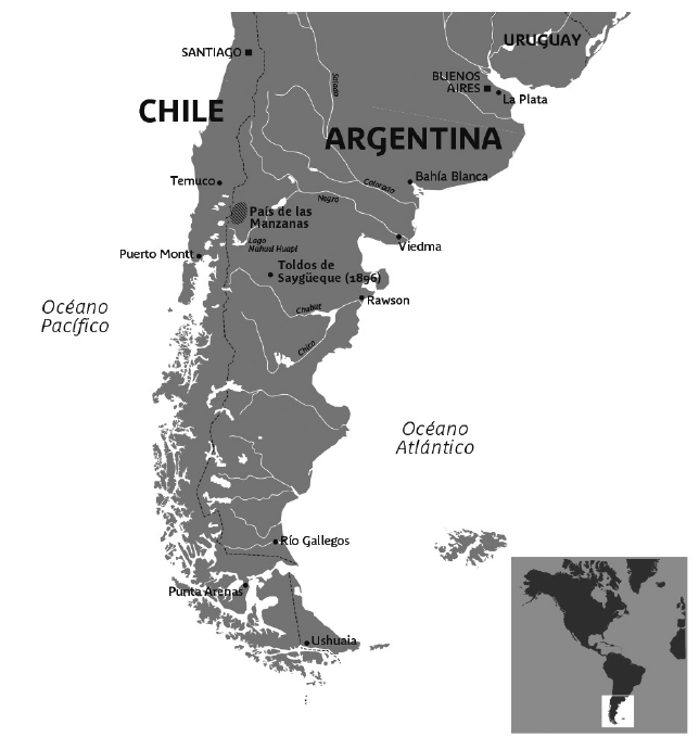 El Musée du quai Branly parisino conserva una colección de platería reunida por el conde Henry de La Vaulx en el marco de una misión a Patagonia en 1896-1897. Este viaje de exploración tenía como principal objetivo la recolección de osamentas que permitieran el estudio de las razas patagónicas. Adicionalmente, el Musée d’Ethnographie du Trocadéro de Paris también le encargó a La Vaulx la adquisición de piezas representativas de las culturas indígenas contemporáneas, anheladas en Francia para estudios de tecnología comparada. La Vaulx constituyó una importante colección de pieles pintadas, textiles y materias primas, objetos de la vida cotidiana y joyas de plata (Núñez-Regueiro y Vezub 2012). Estas últimas fueron principalmente obtenidas en 1896 en la toldería de Valentín Saygüeque (1830-1903), establecida sobre el río Chubut a más de quinientos kilómetros de la territorialidad original del cacique (La Vaulx 1901:128). Saygüeque, famoso por el tesoro monetario y platero acumulado antes de su derrota militar en 1882 (Musters 1964:320), había encabezado durante dos décadas (1860-1881) un grupo de orígenes mixtos huilliche, pehuenche, pampa y tehuelche que controlaba los pasos cordilleranos y el “País de las Manzanas” (Vezub 2009), ubicado al norte del lago Nahuel Huapi sobre la vertiente oriental de la cordillera de los Andes, en el sur de la provincia de Neuquén (Figura 1). La colección platera que La Vaulx obtiene para las colecciones nacionales francesas sobresale por el número importante de piezas (130), así como por el valor económico y simbólico que conforma (2,3 kg).