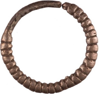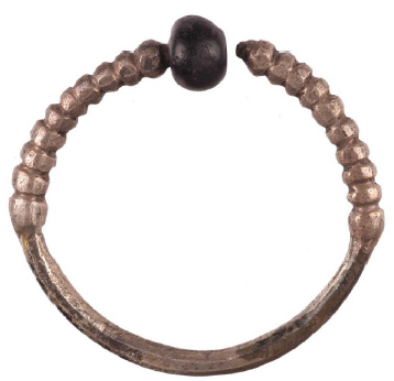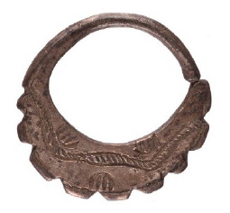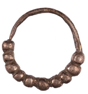 En lo que se refiere a los chahuay anulares, tanto los chicos (Figura 8) como los grandes (Figura 9) fueron obtenidos a partir de la confección de un molde. Sin embargo, solo los de mayor tamaño fueron fundidos y luego finalizados por un trabajo de cincelado superficial que permitió precisar la forma de los motivos de perlas (Figura 9). En estos aros la calidad de ejecución es relativamente homogénea, aunque se trata también de un conjunto con menor representatividad, por ser el más restringido numéricamente.