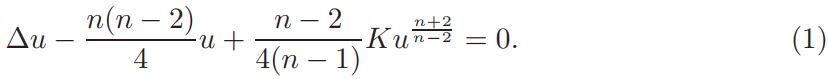 where K : Sn → R is a nondegenerate function (Morse function) with ∆K ≠ 0 in its critical points, and Lu = ∆u − n(n−2)/4 u.