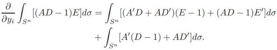 Writing (AD−1)E = (AD−1)(E−1)+A(D−1)+A−1, and observing that ʃSn Adσ = cte, we have