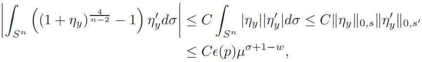 Lemma 4.1. For q ∈ (n/2, n), ||ηy||0,q ≤ Cǫ(p)µσ, with σ < 2, where ǫ(p) → 0 as p → n+2/n−2 .