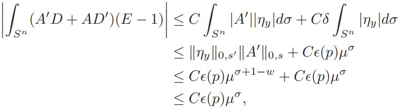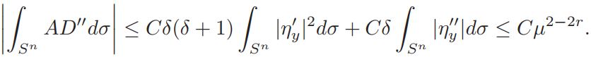 Lemma 4.5. For q ∈ (n/2, n), ʃSn ∇y∇yηydσ| ≤ Cǫµσ−2r, with r < 1/2.