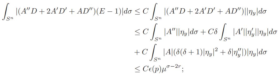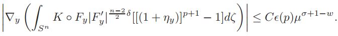 Lemma 4.4. For q ∈ (n/2 , n) and y ∈ Bβ(1−y0)(y0), ʃSn ∇yηydσ|≤ Cǫ(p)µσ, with σ < 2.