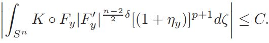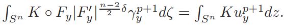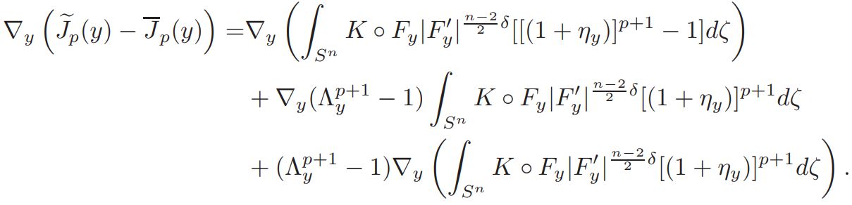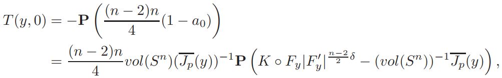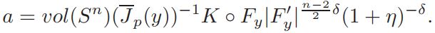 where a0 = a(ξ, y, 0) = vol(Sn)(Jp(y))−1K ◦ Fy|F′y| n−2/2 δ, and |F′y| = 1−|y|2/|y+ξ|2 , ξ ∈ Sn. It is easy to see that