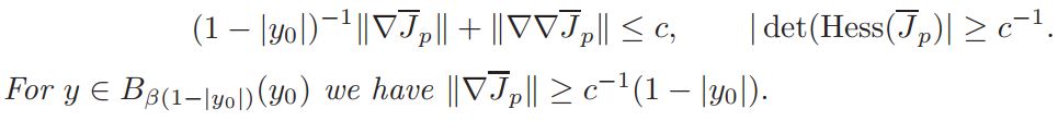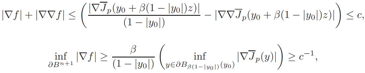 Proposition 2.2. There is a number β < 1 such that, if we denote by y0 one of the critical points of Jp near ∂Bn+1, then the following bound holds for y ∈ Bβ(1−|y0|(y0):