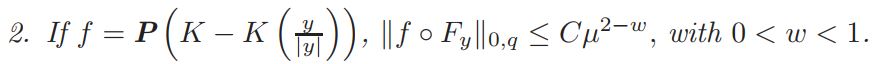 Since K is a Morse function, from the proof of Proposition 1.1 in [8] we have that ||1 − K ◦ Fy||0,q ≤ Cǫ0µ, where ǫ0 can be chosen as small as we want. From this fact, the mean value Theorem, Hölder’s inequality, Proposition 2.1, Theorem 3.1 and the integral and Lp estimates of the functions ηy and η′y, we arrive to