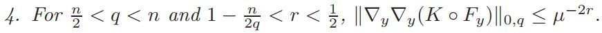 Lemma 3.4. For any q ∈ (n/2 , n) and 1− n/2q < r < 1/2 , we have ||∇y∇yT (y, 0)||0,q ≤ Cµ−2r.