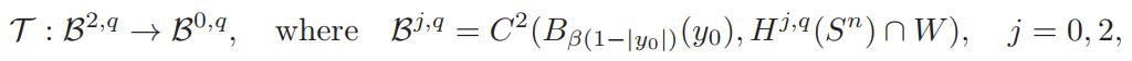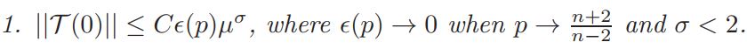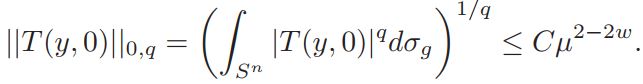 Lemma 3.2. For any q ∈ (n/2, n), ||T (y, 0)||0,q ≤ Cµ2−2w, where 0 <w< 1.