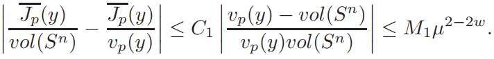Claim 2.|(vol(Sn))−1Jp(y) − K (y/|y|) ≤ Cµ2−2w, where 0 <w< 1.