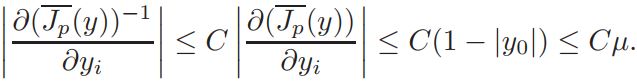 Hence, |∂Ĵp/∂yi| ≤ C(1 − |y0). From Ĵp(y) = Jp(y)/vp(y) and ∂(Jp(y))/∂yi = vp(y) ∂(Ĵp(y))/∂yi + Ĵp(y) ∂(vp(y))/∂yi, we get