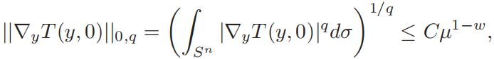 Lemma 3.3. For any q ∈ (n/2, n), ||∇yT (y, 0)0,q ≤ Cµ1−w, with 0 < w < 1.