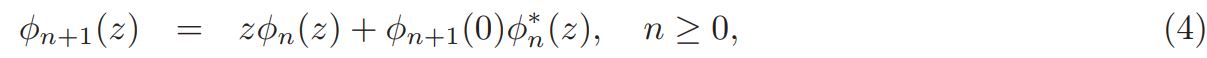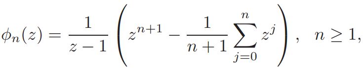 {ϕn}n≥0 is said to be the sequence of orthonormal polynomials with respect to σ. If we denote by κn the leading coefficient of ϕn(z), then we have φn(z) = ϕn(z)/κn. These polynomials satisfy the following forward and backward recurrence relations (see [7], [10], [11]):