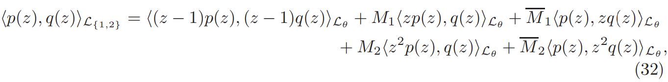 where Mr ∈ C, p, q ∈ P, and (·, ·)Lθ is the bilinear functional associated with the normalized Lebesgue measure in the unit circle.