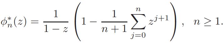 where φ∗n (z) = znφn(z−1) is the so-called reversed polynomial and the complex numbers {φn(0)}n≥1 are known as Verblunsky (Schur, reflection) parameters. It is important to notice that in the positive definite case we get |φn(0)| < 1, n ≥ 1, and