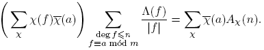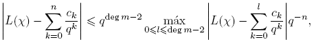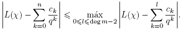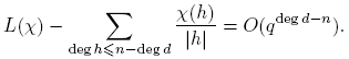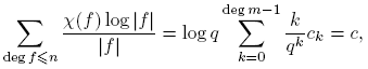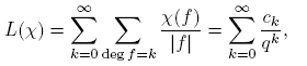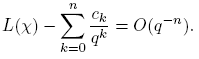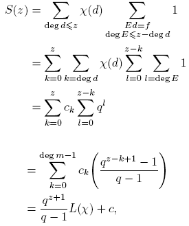 Aparentemente, la suma anterior es infinita. Sin embargo, más adelante vamos a demostrar que cuando k ≥ deg m, ck = 0, de manera que en la definición de L(χ) solo se necesita la suma hasta k = deg m− 1.