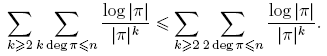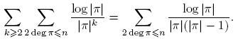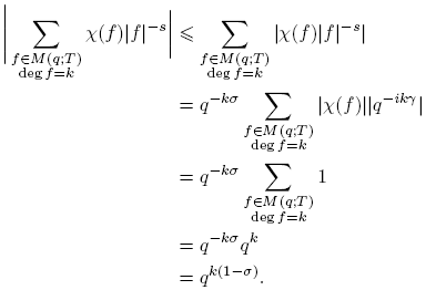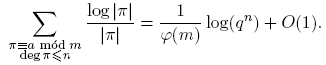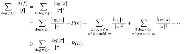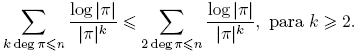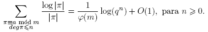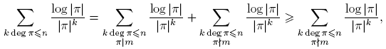 donde V es el número de caracteres χ tales que L(χ) = 0, es decir, 1 ≤ V ≤ k−1. Nótese que log |π| = deg π log q > 0, pues log q ≥ log 2 y deg π ≥ 1. Entonces,