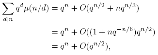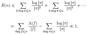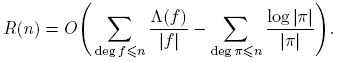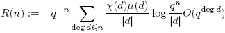 Entonces, R(n) = O(1), pues |R(n)| ≪ q−nqn = 1. Comparando las dos expresiones obtenidas, tenemos