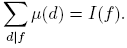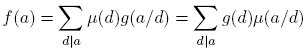 Proposición 2.10 (Fórmula de la inversión de Möbius). Sean f y g dos funciones aritméticas. Suponga que para cadaa ∈ M(q; t) la función
