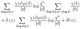 Definición 3.10. Para un carácter no principal χ módulo m(t), con m(t) ∈ Fq[t], hagamos