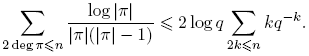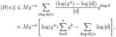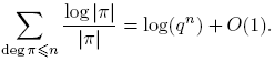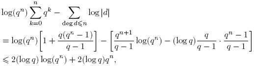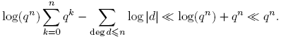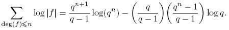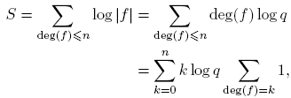 Demostración. Sea S: = Σdeg(f)≤n log |f|. Puesto que |f| = qdeg(f), entonces