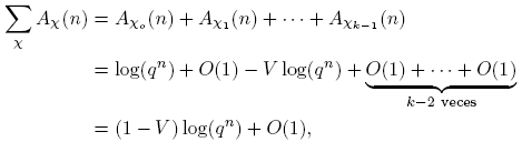 Si L(χ) = 0, entonces Aχ(n) = O(1) + log(qn)(−1). Por otro lado, del Corolario 3.16 tenemos, si L(χ ≠ 0,