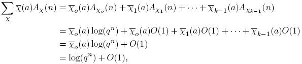 El resto de esta sección está dedicada a mostrar que para χ ≠ χo, Aχ(n) = O(1). El Teorema 3.1 se seguirá de este resultado, del Teorema 3.13 y las relaciones de ortogonalidad.