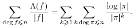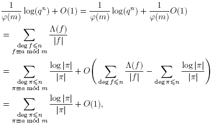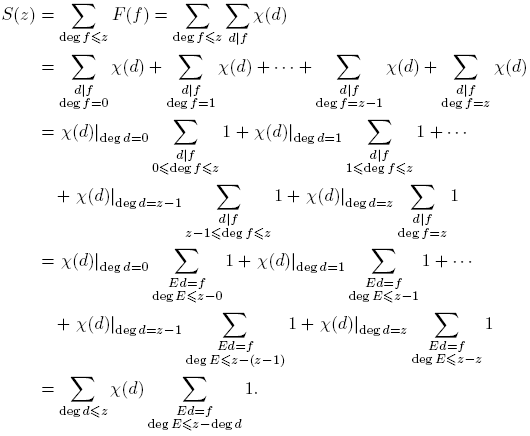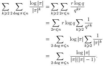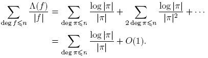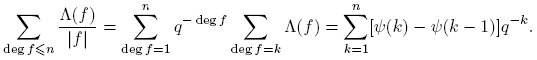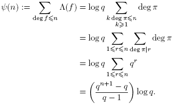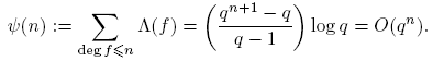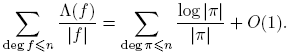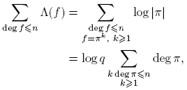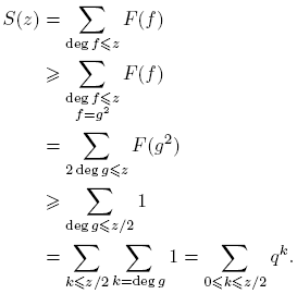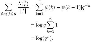 tomando k = deg(f). Puesto que Σdeg(f)=k 1 = qk para f(t) ∈ Fq[t], entonces