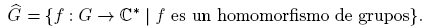 Definición 2.12. Sea G un grupo abeliano finito, denotado multiplicativamente. Un homomorfismo f: G → C* se llama un carácter de G si f tiene la propiedad multiplicativa