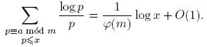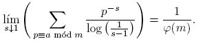 (2)Donde se puede ver que, en cierto sentido, los primos se distribuyen por igual en las progresiones.