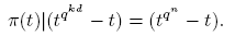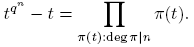 Recíprocamente, si π(t)|(tqⁿ − t), escogemos