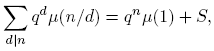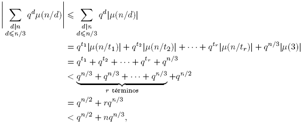 , entonces qd < qn/3 y, además, |μ(n/d)| ≤ 1; por consiguiente,