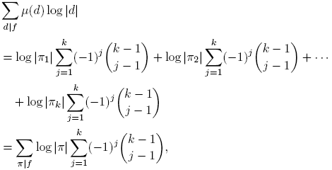 pues, f = 1 cuando deg f = 0, y f ≠ 1 cuando 0 < deg f. Por otro lado, invirtiendo el orden de la suma, tenemos