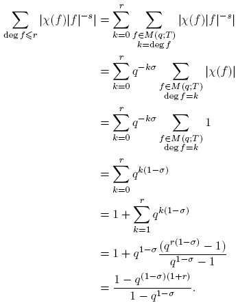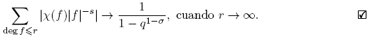 Demostración. Tomemos σ = R(s) > 1. Como |f| = qk, donde k = deg f, y existen qk polinomios mónicos de grado k, tenemos, para todo k = 0, 1, 2, . . ., lo siguiente: