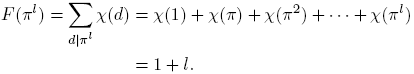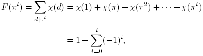 , la cual es una función multiplicativa, pues χ es una función multiplicativa. Ahora, como χ es real, tenemos: si χ(π) = 0, entonces F(πl) = χ(1) = 1; si χ(π) = 1, entonces